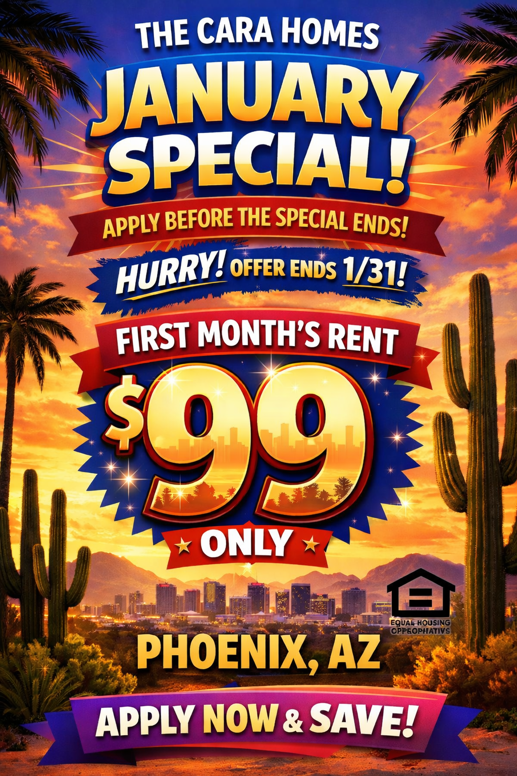 Donβt miss out! We have 1-bed and 2-bed apartments with patios available, plus a 3-bed, 2-bath with garage β move-in ready now! The Cara is pet-friendly, features a pool, convenient parking, and a great Phoenix location near shopping and freeways. Apply today before this special ends! Hurry β limited units available! π West Phoenix location, close to shopping, schools & I-17 πΎ Pet-friendly with a park on site